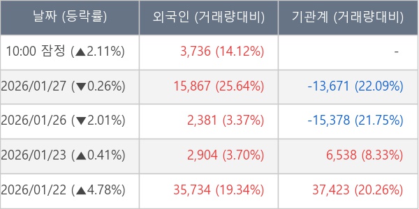 [표] 외국인ㆍ기관 순매매량 (단위 주)