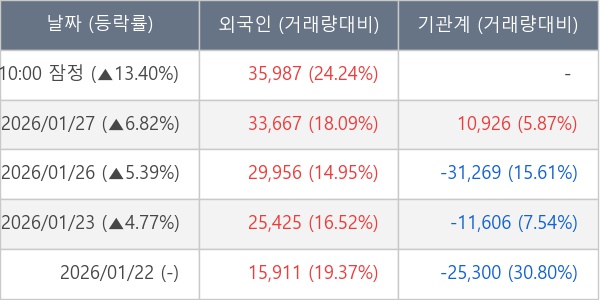 [장중수급포착] 다우기술, 외국인 12일 연속 순매수행진... 주가 +13.40%