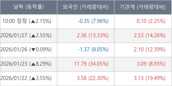 ※ 사모펀드 등 일부 기관의 순매매량은 표시되지 않음