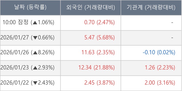 [표] 외국인ㆍ기관 순매매량 (단위 만주)