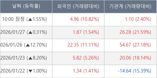 [표] 주요 기관별 순매매량 (단위 만주)