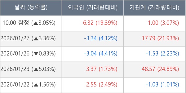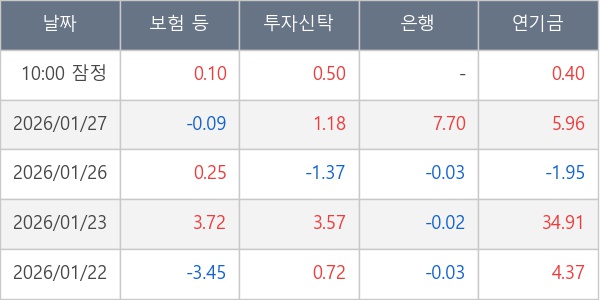 [표] 주요 기관별 순매매량 (단위 만주)