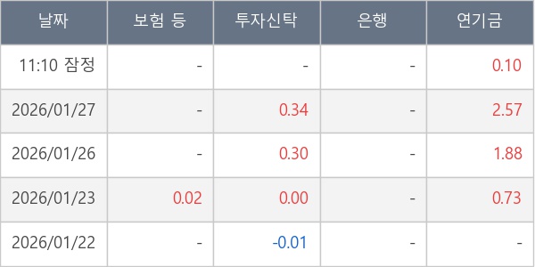 [표] 주요 기관별 순매매량 (단위 만주)