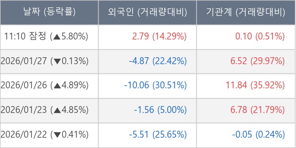 ※ 사모펀드 등 일부 기관의 순매매량은 표시되지 않음