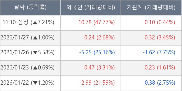 [표] 외국인ㆍ기관 순매매량 (단위 만주)