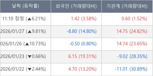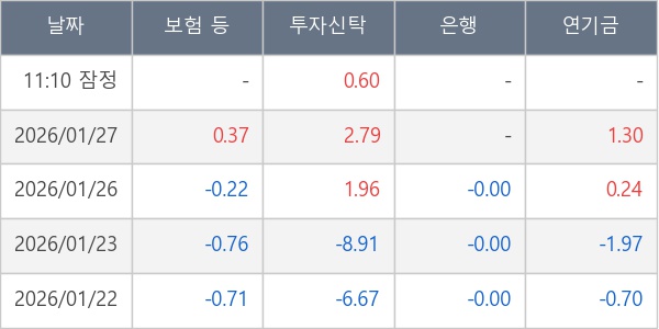 [표] 주요 기관별 순매매량 (단위 만주)
