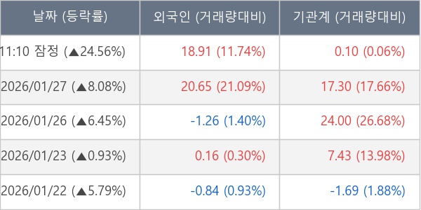 [장중수급포착] 태성, 외국인/기관 동시 순매수… 주가 +24.56%