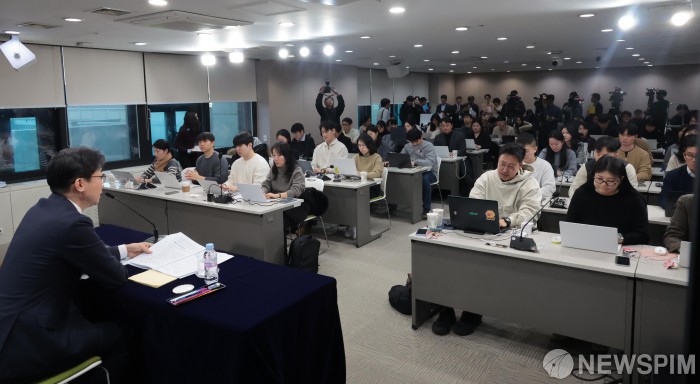 [서울=뉴스핌] 이길동 기자 = 이억원 금융위원장이 28일 서울 종로구 정부서울청사에서 열린 금융위원회 출입기자단 월례 간담회에서 발언을 하고 있다. 2026.01.28. gdlee@newspim.com