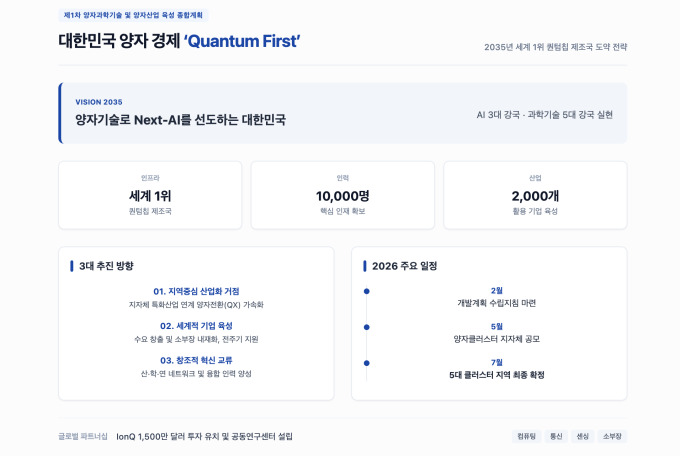 이번 종합계획은 2035년까지 세계 1위 퀀텀칩 제조국 달성, 양자인력 1만명 육성, 양자기업 2000개 확보, 국제표준 채택 세계 3위 달성 등 구체적인 목표를 담았다. 단순 연구개발을 넘어 산업화까지 이어지는 실질적 로드맵을 제시했다는 점이 특징이다.