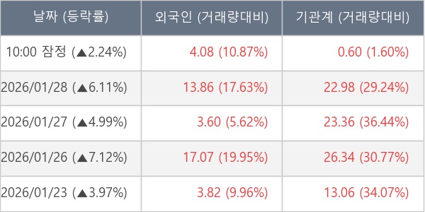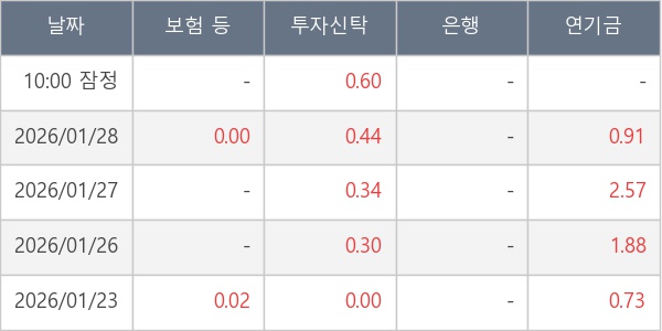 [표] 주요 기관별 순매매량 (단위 만주)