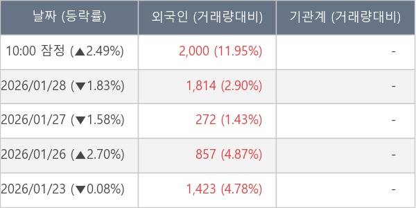 [표] 외국인ㆍ기관 순매매량 (단위 주)