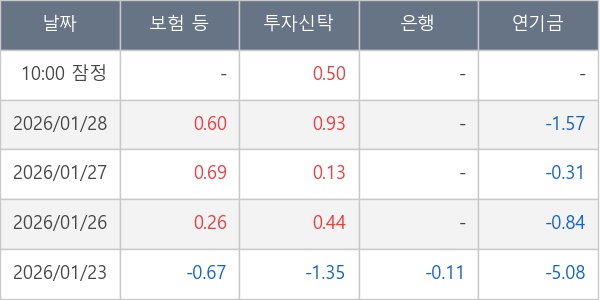 [표] 주요 기관별 순매매량 (단위 만주)