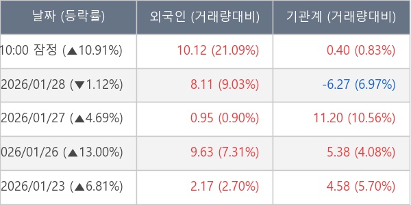[표] 외국인ㆍ기관 순매매량 (단위 만주)