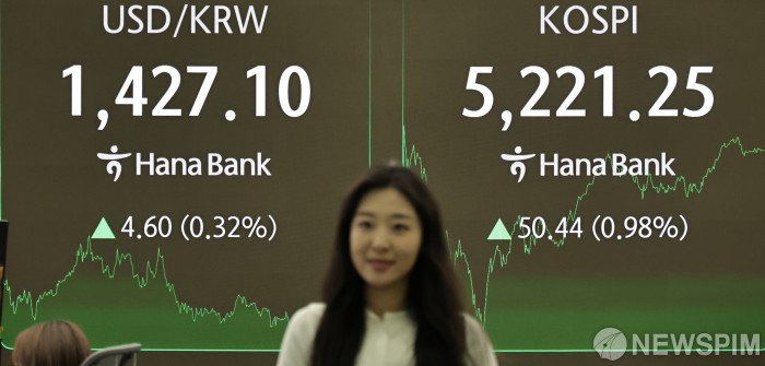 코스피 5220 돌파...달러/원 환율 1427원 마감