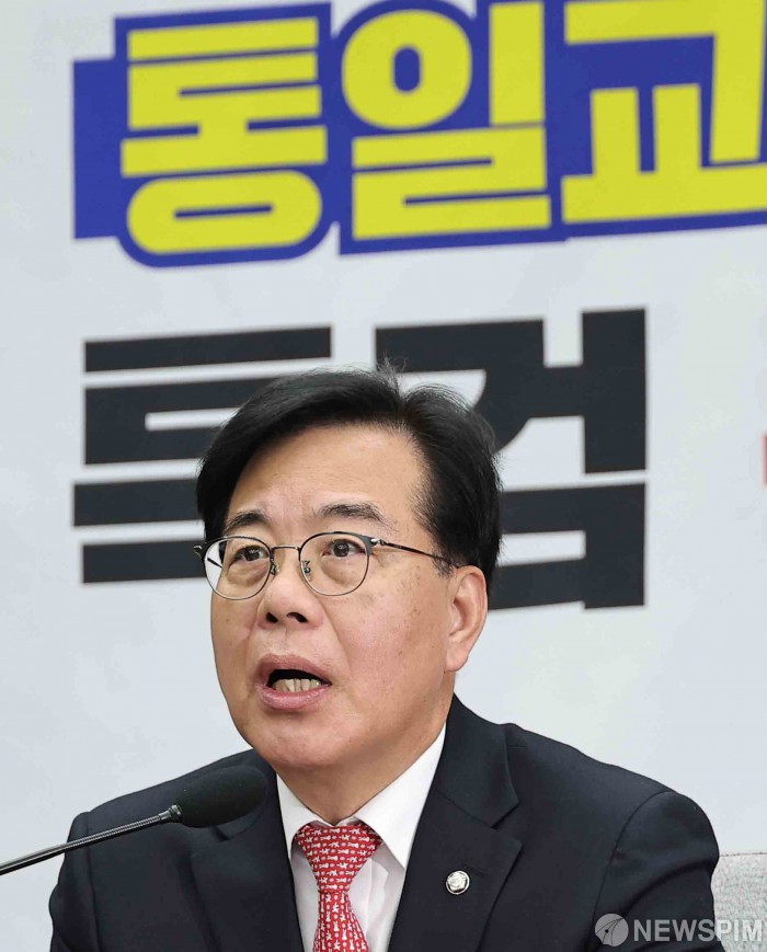 [서울=뉴스핌] 윤창빈 기자 = 송언석 국민의힘 원내대표가 30일 서울 여의도 국회에서 열린 원내대책회의에서 모두발언을 하고 있다. 2026.01.30 pangbin@newspim.com