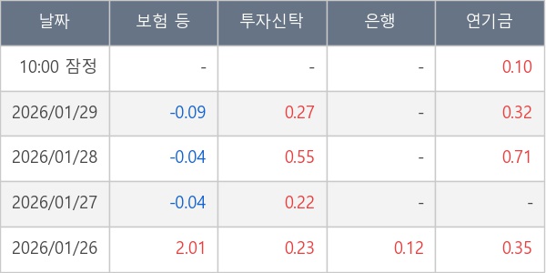 [표] 주요 기관별 순매매량 (단위 만주)