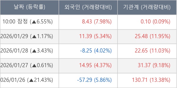 [표] 주요 기관별 순매매량 (단위 만주)