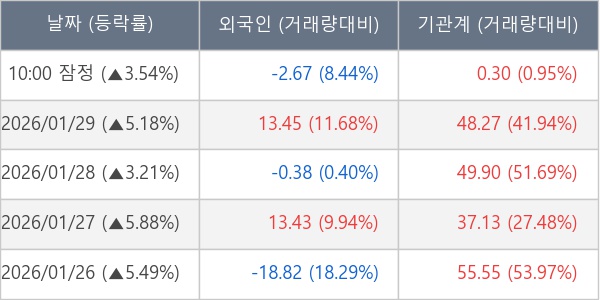 [표] 주요 기관별 순매매량 (단위 만주)
