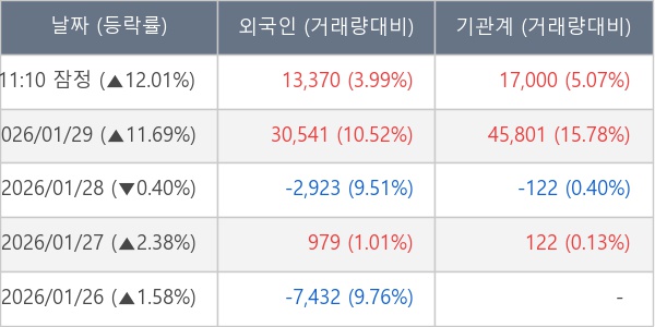 [장중수급포착] 에프앤가이드, 외국인/기관 동시 순매수… 주가 +12.01%
