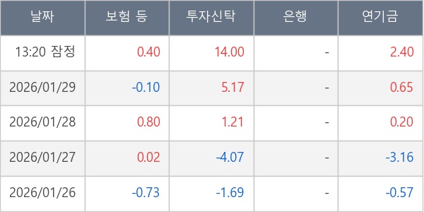 [표] 주요 기관별 순매매량 (단위 만주)