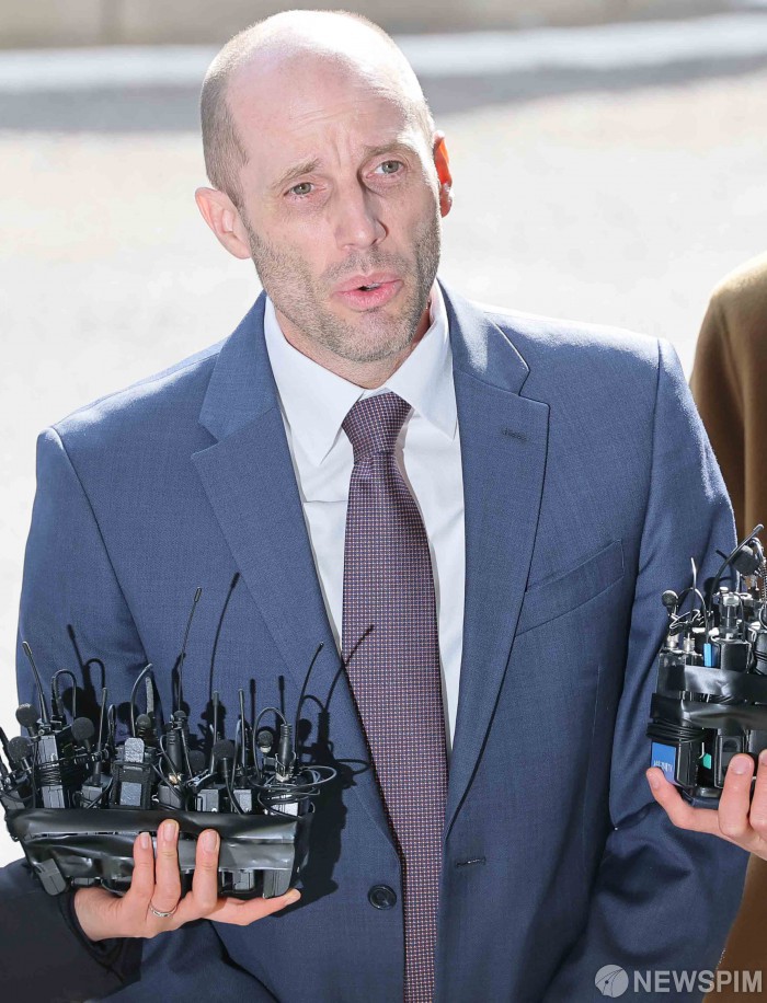 [서울=뉴스핌] 윤창빈 기자 = 쿠팡의 대규모 개인정보 유출 사태에 대해 '셀프 조사'로 증거를 인멸한 혐의를 받는 해롤드 로저스 쿠팡 한국 임시 대표가 30일 오후 서울 종로구 서울경찰청에서 수사를 받기 위해 출석하며 취재진의 질문에 답변하고 있다. 2026.01.30 pangbin@newspim.com