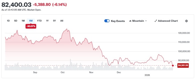 한국 시간 오후 7시 30분 기준 비트코(BTC)인 가격은 24시간 전에 비해 6% 내린 8만2536달러에 거래됐다.