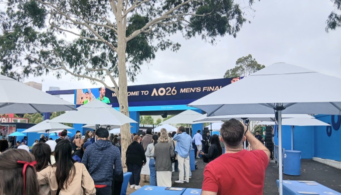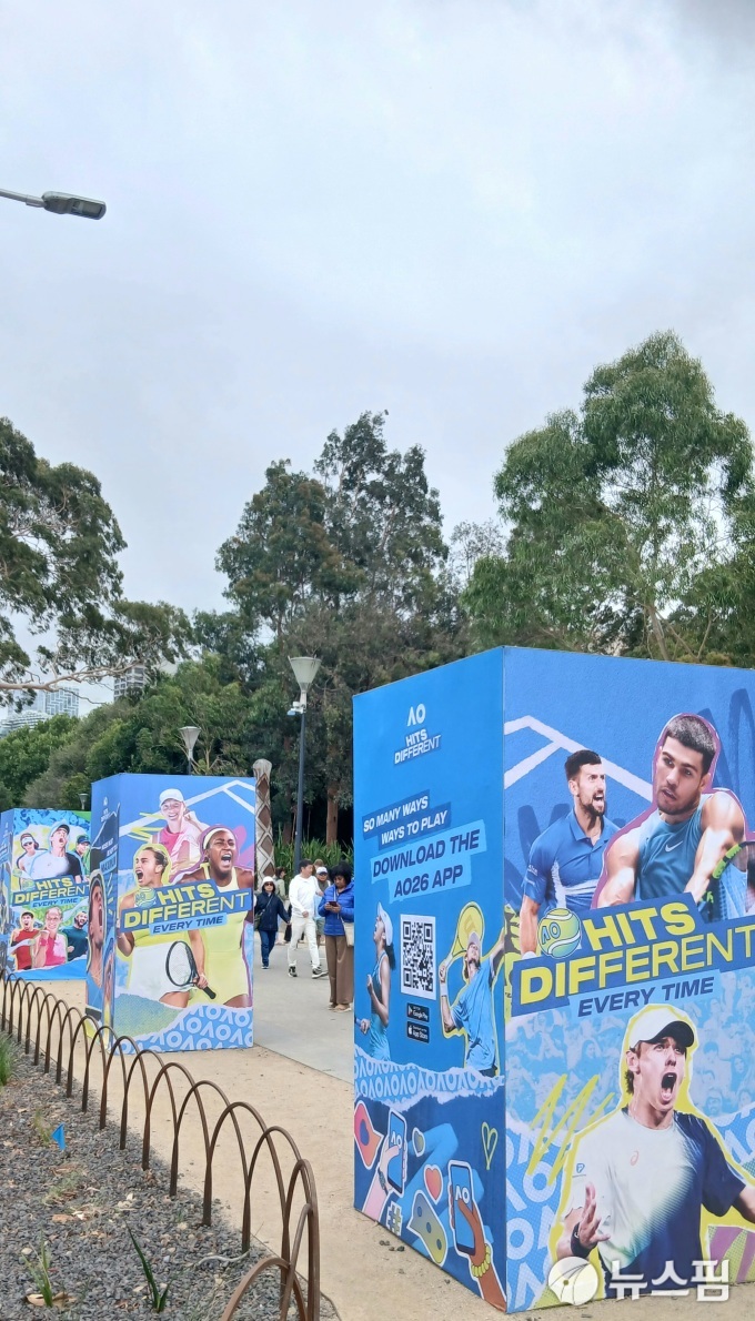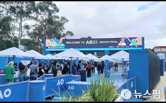 다른 쪽 출입구에도 일찌감치 경기장에 들어가려는 테니스팬들로 분주하다. 경기장까지 가는 동안 각종 테니스 관련 이벤트를 체험해볼 수 있는 공간도 마련됐다. 테니스를 보는 것뿐 아니라 즐길거리도 마련해 놓았다. [멜버른=뉴스핌] 이웅희 기자= 2026.02.01 iaspire@newspim.com존 케인 아레나 옆에 위치해 있는 내셔널 테니스 센터 외벽은 역대 호주오픈 우승자들의 사진들로 꾸며져 있다. [멜버른=뉴스핌] 이웅희 기자= 2026.02.01 iaspire@newspim.com호주오픈 스폰서인 한국 KIA도 대회 지원 차량에 'AO(Australian Open)'를 붙여 활발히 홍보에 나서고 있다. 멜버른 곳곳에서 찾아볼 수 있다. [멜버른=뉴스핌] 이웅희 기자= 2026.02.01 iaspire@newspim.com알카라스와 조코비치의 결승전이 열리게 될 로드 레이버 아레나. 삼엄한 경비 속에 철저히 출입이 통제되고 있다. [멜버른=뉴스핌] 이웅희 기자= 2026.02.01 iaspire@newspim.com멜버른 야라 강변에 둥둥 떠 있는 레스토랑은 한쪽에 간이 테니스 코트까지 마련해 호주 오픈 경기를 보고, 식사도 하며, 테니스도 즐길 수 있도록 만들어 놓았다. [멜버른=뉴스핌] 이웅희 기자= 2026.02.01 iaspire@newspim.com
