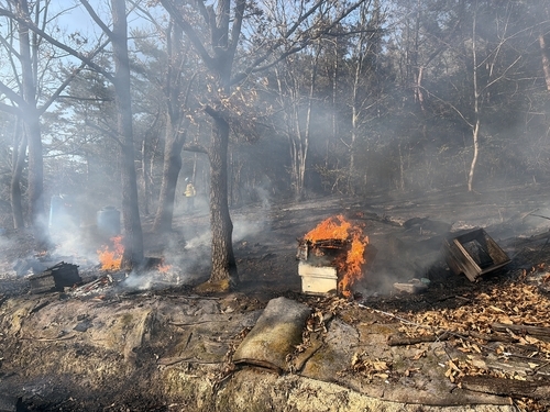 불은 산속 한 양봉 시설 인근에서 시작된 것으로 추정되며, 다행히 인명 피해는 발생하지 않았다.