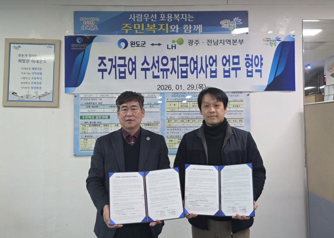 완도군은 LH 광주전남지역본부와 '주거급여 수급자 주거비 부담 완화'를 위한 업무협약을 체결했다고 2일 밝혔다.