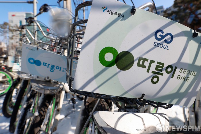 [서울=뉴스핌] 류기찬 기자 = 개인정보보호위원회는 서울시 공공자전거 '따릉이'의 회원정보 450만건 이상이 유출됐다고 지난 30일 밝혔다. 사진은 2일 오후 서울 시내의 한 따릉이 대여소에 따릉이가 세워져 있다. 2026.02.02 ryuchan0925@newspim.com