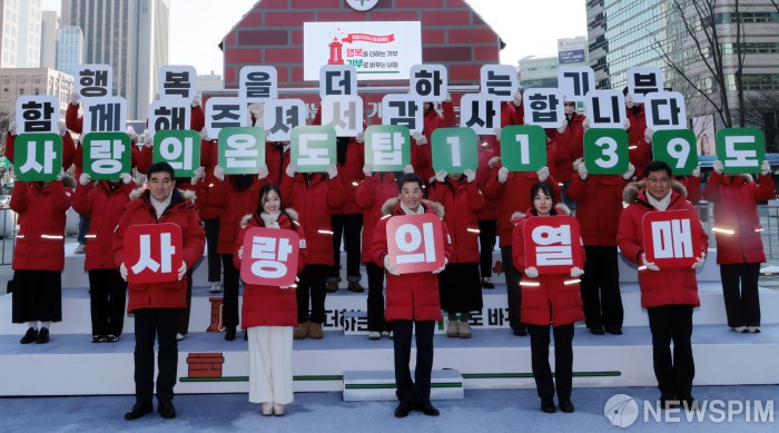 [서울=뉴스핌] 이길동 기자 = 2일 서울 종로구 광화문광장에서 열린 사랑의열매 희망 2026 나눔캠페인 폐막식에서 김병준 사랑의열매 회장, 황인식 사무총장,이혜성 홍보대사,기부자인 이유미 강원소방본부 소방장등 참석자들이 카드섹션 퍼포먼스를 하고 있다.'희망2026나눔캠페인'은 62일간 총 5124억원을 모금, 사랑의온도탑 나눔온도 113.9도를 달성했다. 이는 목표했던 4천500억원보다 약 624억원 많은 규모로, 역대 사랑의열매 희망나눔 캠페인 중 최고액이자 최초로 5천억원을 돌파한 기록이다.2026.02.02gdlee@newspim.com