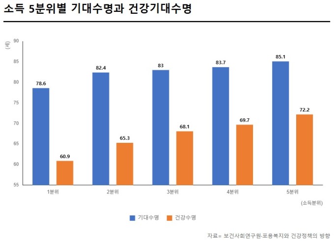 이 대통령이 설탕부담금을 꺼내 들자 저소득층의 건강 격차가 커질 것이라는 전망이 나오고 있다. 보건사회연구원의 '포용복지와 건강정책의 방향'에 따르면, 소득 수준이 가장 낮은 하위 20% 집단(1분위)은 소득이 가장 높은 상위 20% 집단(5분위)과 비교할 때 기대수명 6년, 건강기대수명 11년의 차이가 난다.