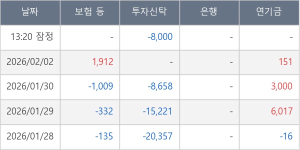 [표] 주요 기관별 순매매량 (단위 주)