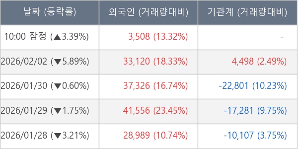 [표] 외국인ㆍ기관 순매매량 (단위 주)