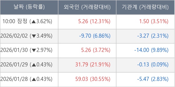 [표] 주요 기관별 순매매량 (단위 만주)