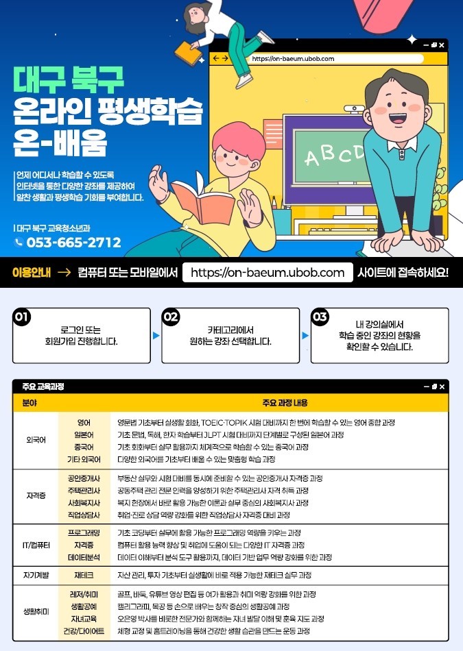 대구 북구, 온라인 평생학습 '온-배움' 상반기 학습자 모집