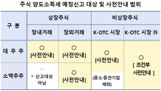 국세청은 상장법인 대주주 등 신고 대상자에게 오는 4일부터 안내문을 발송할 예정이다.