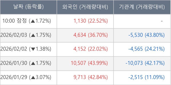 [표] 외국인ㆍ기관 순매매량 (단위 주)