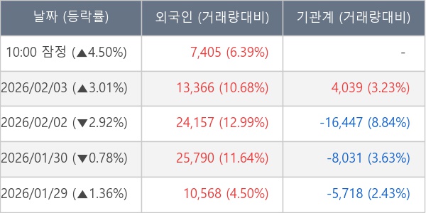 [표] 외국인ㆍ기관 순매매량 (단위 주)