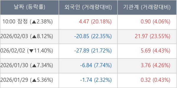 ※ 사모펀드 등 일부 기관의 순매매량은 표시되지 않음