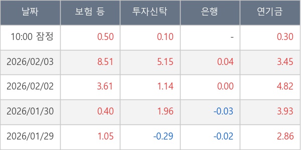 [표] 주요 기관별 순매매량 (단위 만주)