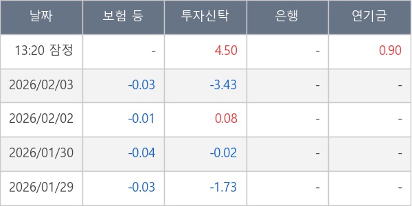 [표] 주요 기관별 순매매량 (단위 만주)