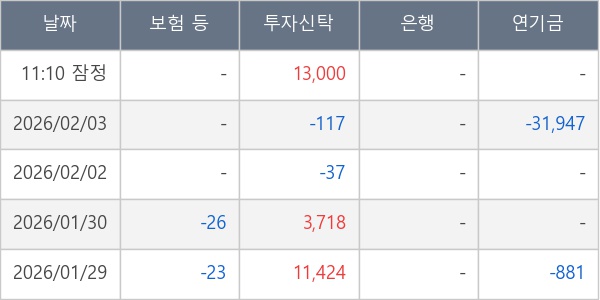 ※ 사모펀드 등 일부 기관의 순매매량은 표시되지 않음