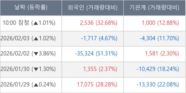 [표] 외국인ㆍ기관 순매매량 (단위 주)