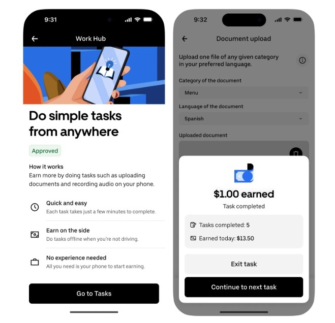 우버 AI 솔루션스의 핵심은 '글로벌 디지털 태스크 플랫폼'이다. 우버는 30개국 이상에서 활동하는 인력 네트워크를 기반으로, 코딩과 금융, 법률, 과학, 언어 등 다양한 전문 분야의 인력이 AI 모델 학습을 위한 데이터 라벨링, 번역, 편집, 품질 검수 등의 업무를 수행할 수 있도록 연결해 준다. 이는 기존 차량·배달 기사 중심의 긱(Gig) 워크 모델을, AI 훈련 작업이라는 고부가가치 디지털 노동으로 확장하는 움직임으로 해석된다.