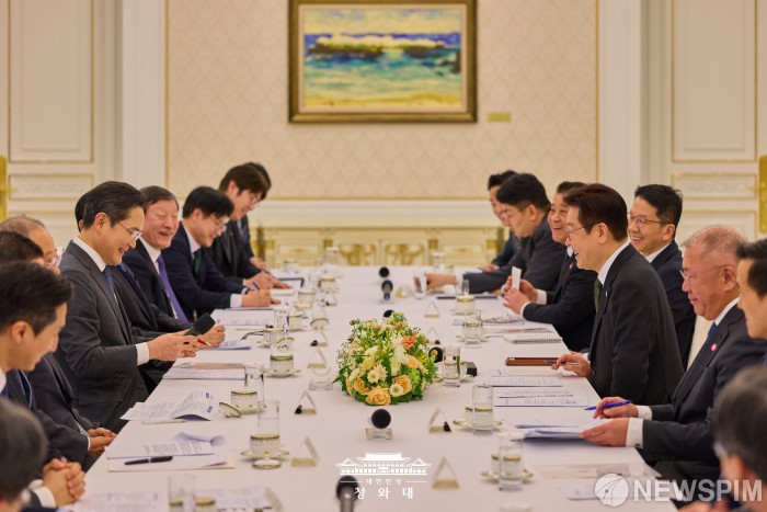 [서울=뉴스핌] 이재명 대통령이 4일 오후 서울 종로구 청와대에서 청년일자리와 지방투자 확대를 위한 기업간담회를 열고 있다. [사진=청와대] 2026.02.04 photo@newspim.com