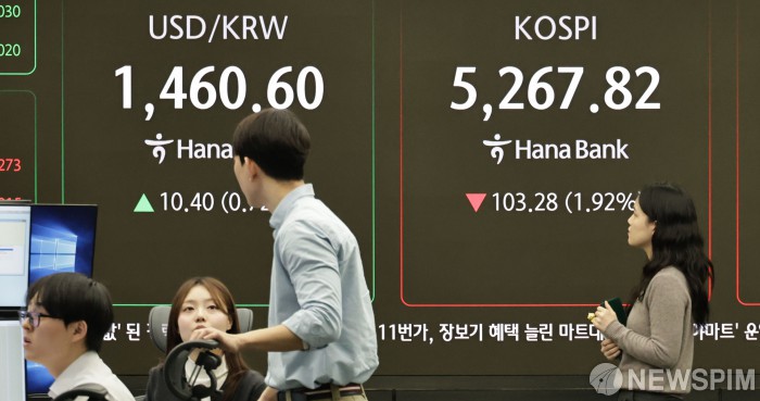 코스피 5260 선으로 후퇴...달러/원 환율 1460원 진입하며 출발