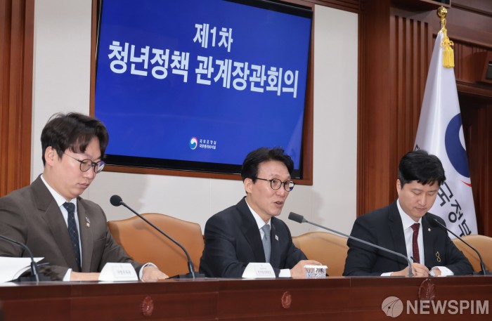 [서울=뉴스핌] 이길동 기자 = 김민석 국무총리가 6일 서울 종로구 정부서울청사에서 열린 제1차 청년정책 관계장관회의를 주재하며 모두 발언을 하고 있다. 왼쪽은 모경종 더불어민주당 청년위원장, 오른쪽은 우재준 국민의힘 청년위원장 2026.02.06 gdlee@newspim.com