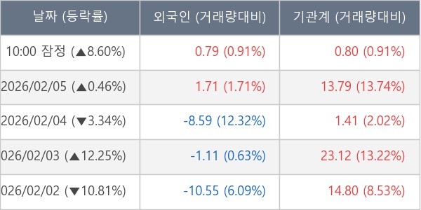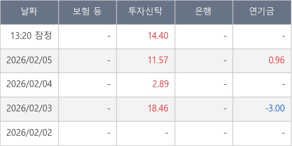 [표] 주요 기관별 순매매량 (단위 만주)