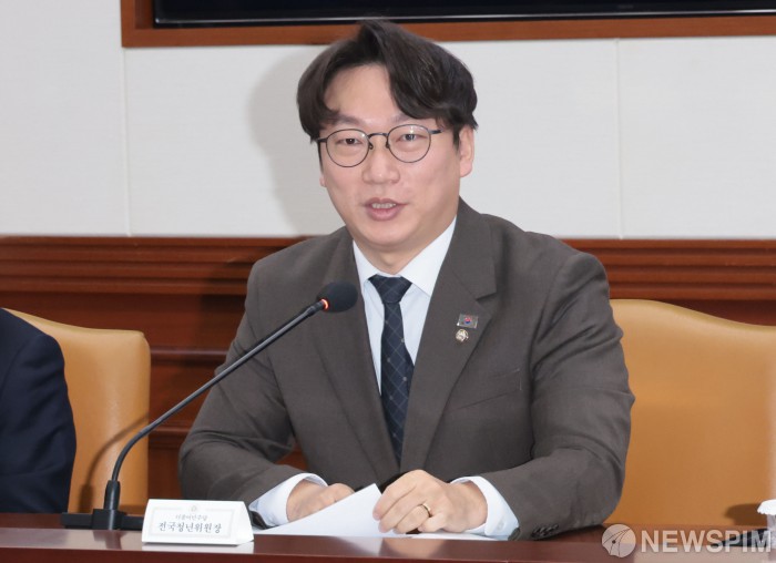 [서울=뉴스핌] 이길동 기자 = 모경종 더불어민주당 청년위원장이 6일 서울 종로구 정부서울청사에서 열린 제1차 청년정책 관계장관회의에서 발언하고 있다.2026.02.06 gdlee@newspim.com